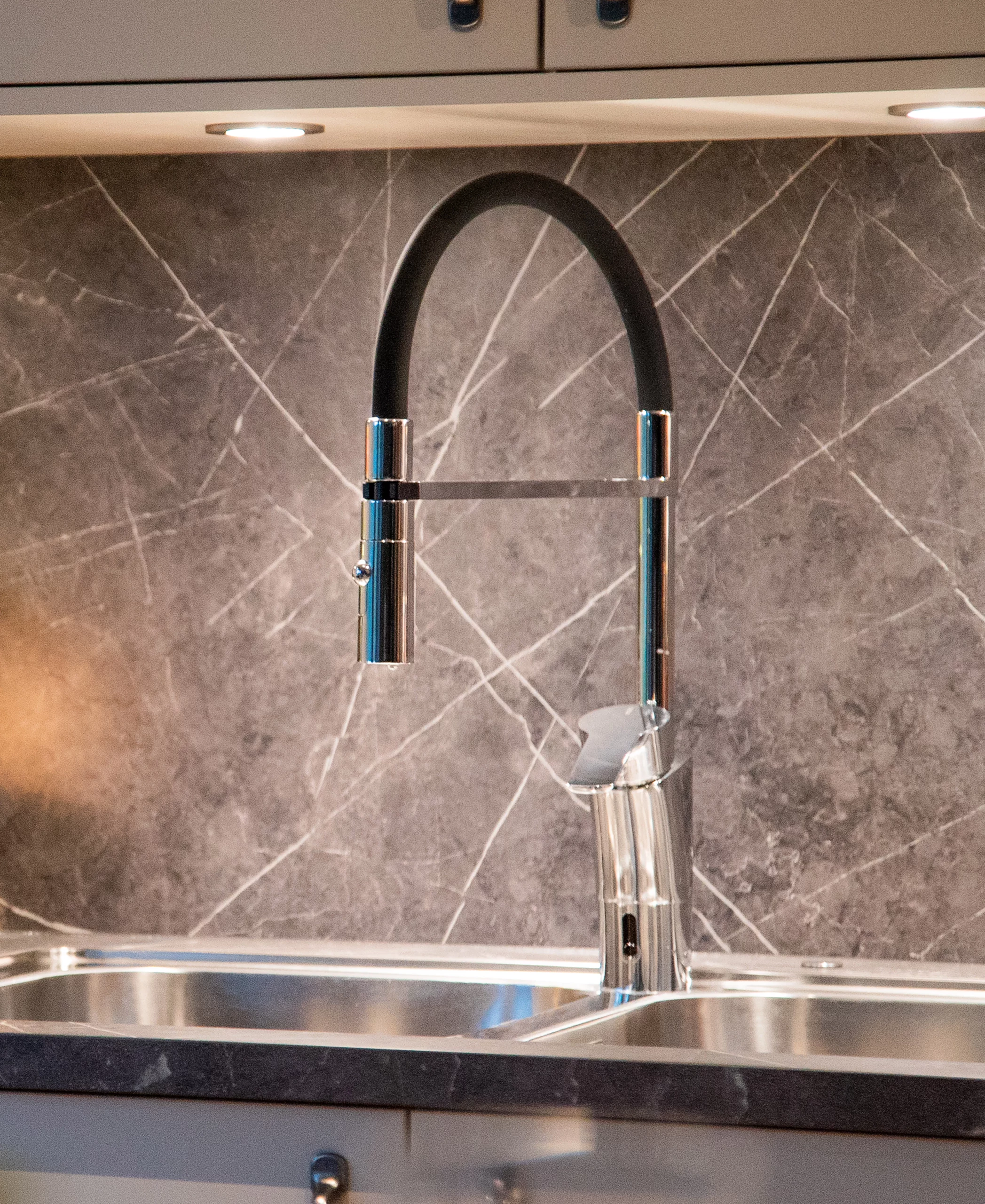 Blandaren är utrustad med ett utdragbart munstycke med två olika strållägen, vilket ger dig full kontroll oavsett om du sköljer grönsaker, fyller kastruller eller rengör diskhon. Det praktiska rengöringsläget gör det enkelt att torka av blandaren utan att sensorn aktiveras.